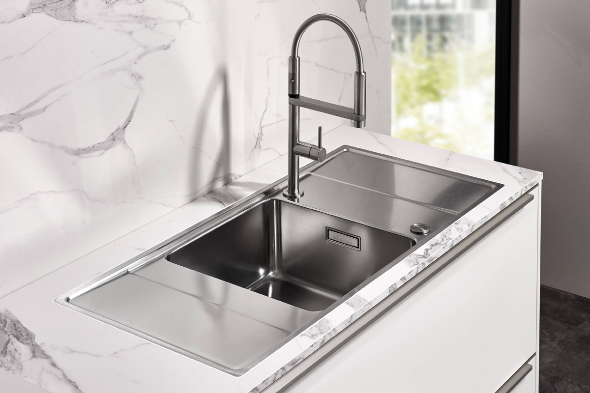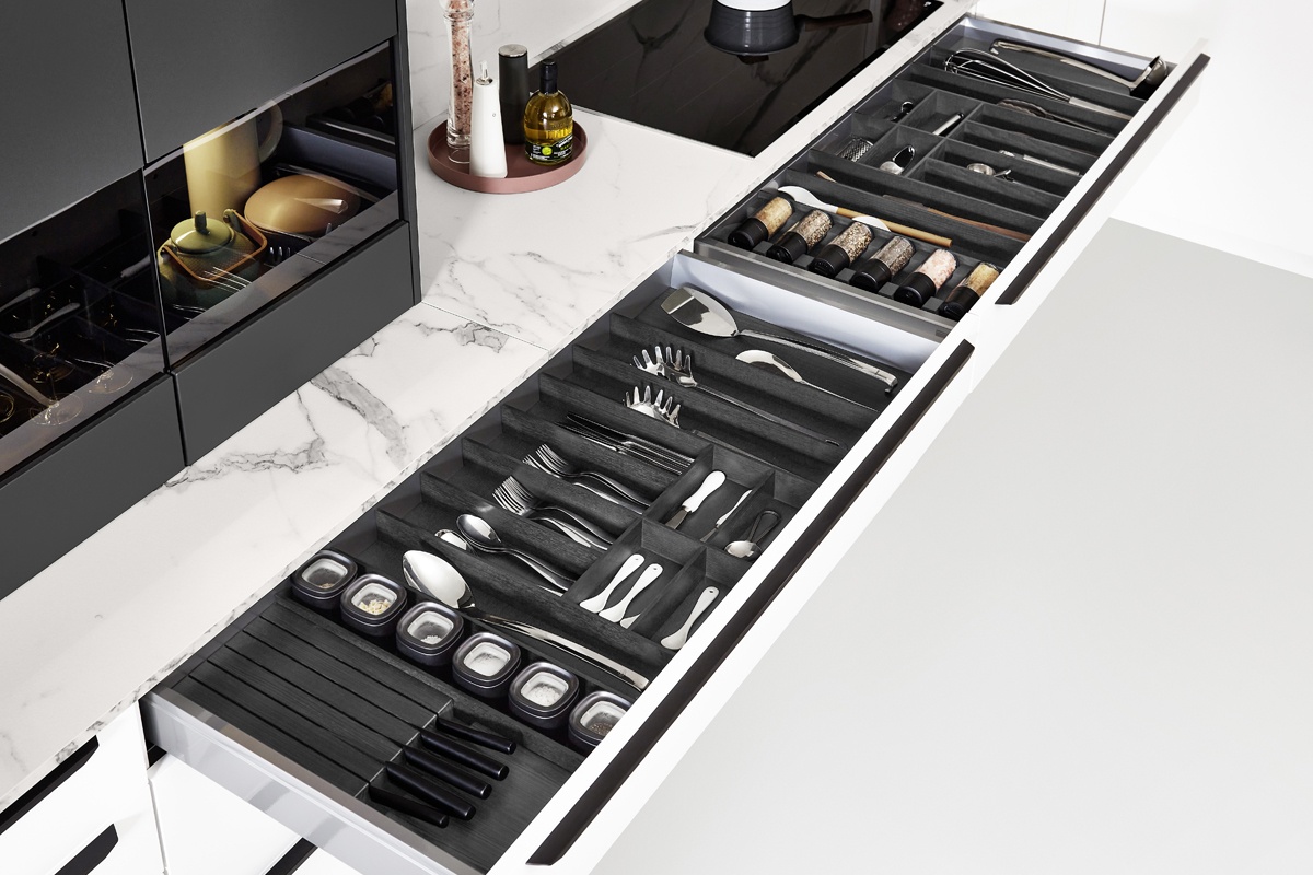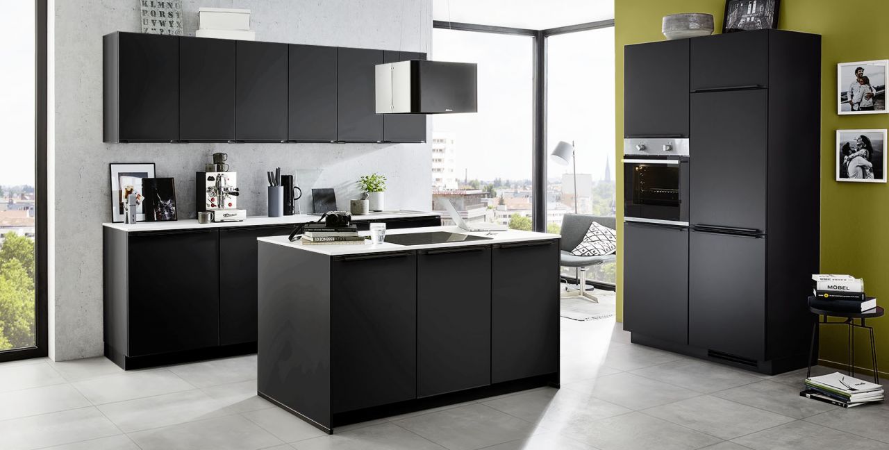 Inclusief RVS-inbouwoven Laurus LEB3 Energieklasse A, keramische kookplaat met inductie Laurus LIA600, RVS-eilandschouw Airforce F181BK Energieklasse B, koelkast Laurus LKS88E Energieklasse E, RVS-inbouwspoelbak Rodi Okio Line 85 Deep, XL-kasten.