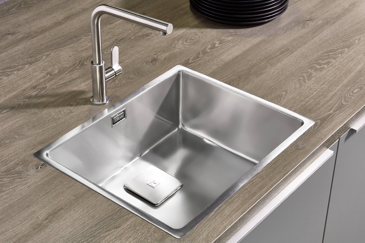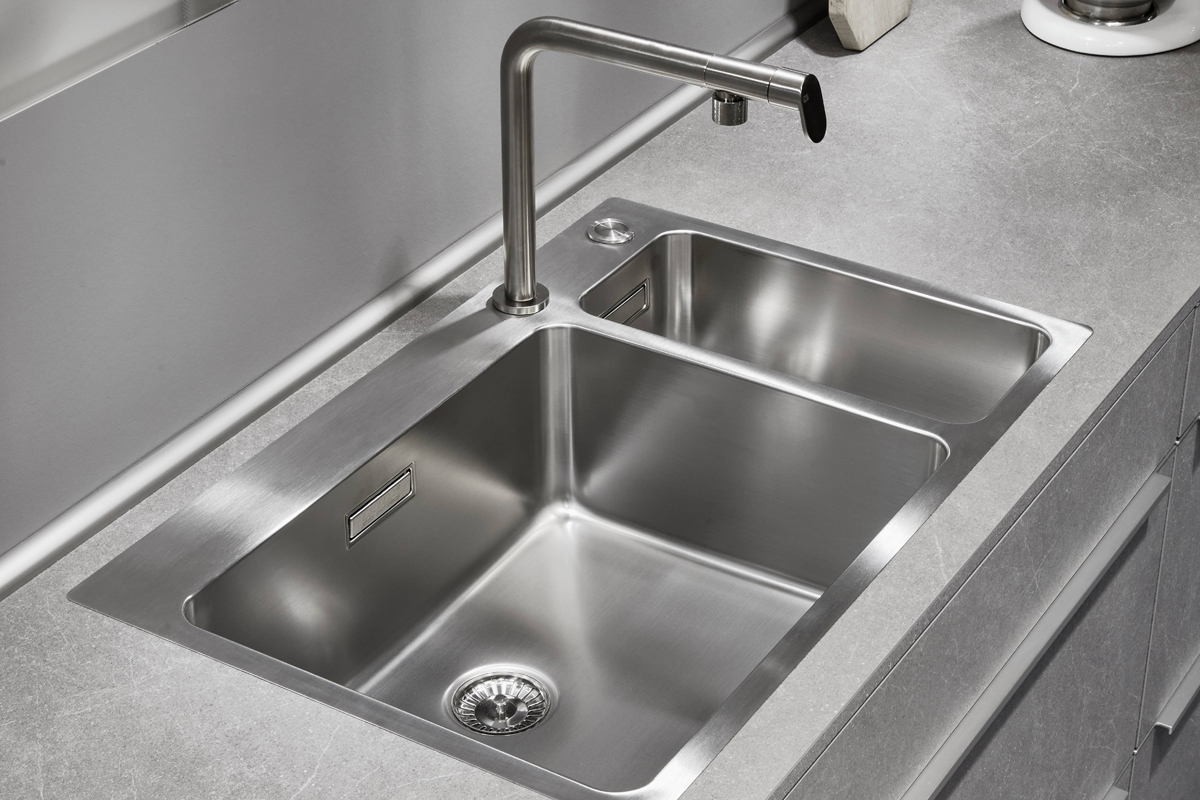 Inclusief RVS-inbouwoven Bosch HBA530BR1 Energieklasse A, keramische kookplaat met inductie en werkbladafzuiging (circulatielucht) Elica NIKOLATESLA F, koelkast Progress PK1215 Energieklasse E, RVS-inbouwspoelbak Rodi Okio Line 85 Deep, servieskast.