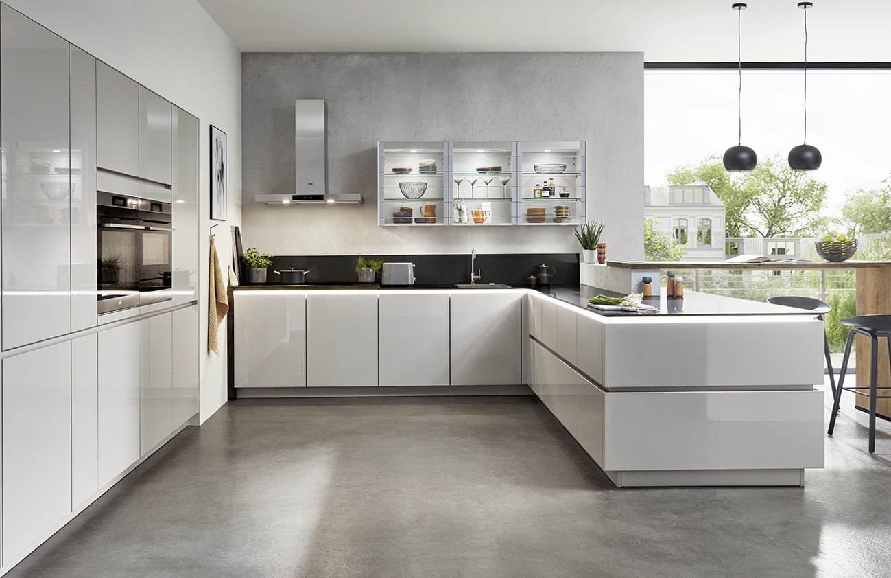 Inclusief RVS-inbouwoven Laurus LEB5 Energieklasse A, keramische kookplaat Laurus LCA600, RVS-eilandschouw Faber CYLINDRA ISOLA IX Energieklasse C, koelkast Laurus LKG88E Energieklasse E, RVS-inbouwspoelbak Rodi Okio Line 85 Deep, onderkasten met grote laden, wandborden.